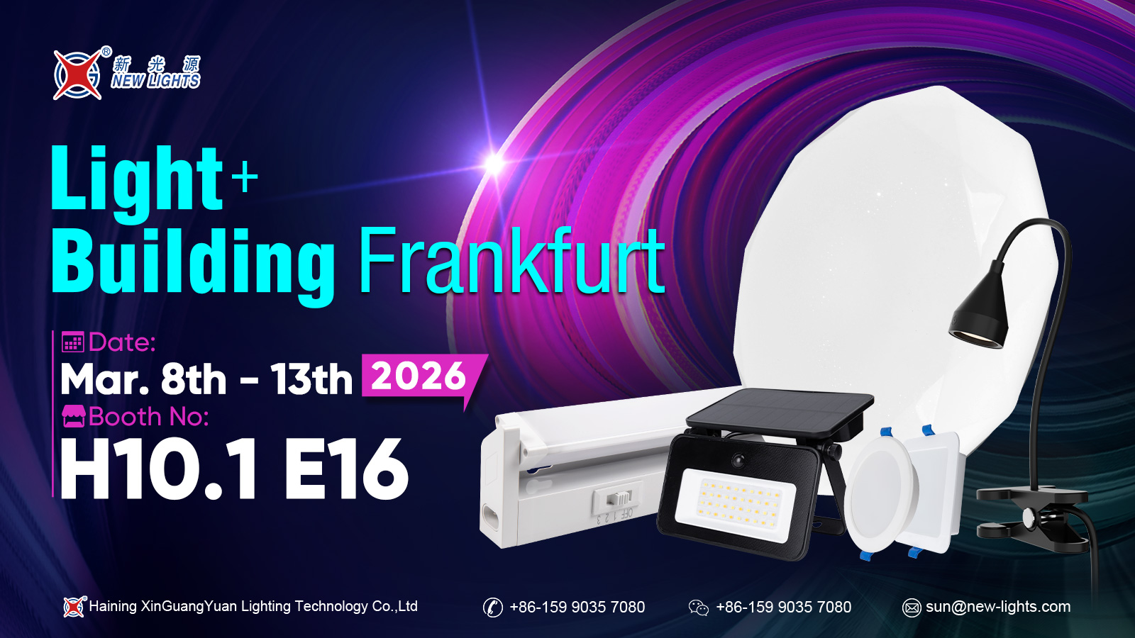 Haining Xin Guang Yuan Lighting Technology Co., Ltd, Almanya'nın Frankfurt kentindeki uluslararası aydınlatma fuarına katılacak 8 Mart - 13 Mart 2026 . Şirket fuarda sergilenecek Stand H10.1 E16 . Sergi sırasında Haining Xin Guang Yuan Lighting Technology Co., Ltd, en son aydınlatma teknolojilerini ve ürün çözümlerini sergileyecek ve dünyanın dört bir yanından sektör profesyonelleri ve ortaklarıyla derinlemesine alışverişlerde bulunacak. Ziyaretçiler tartışmalar ve işbirliği fırsatları için standa uğrayabilirler.